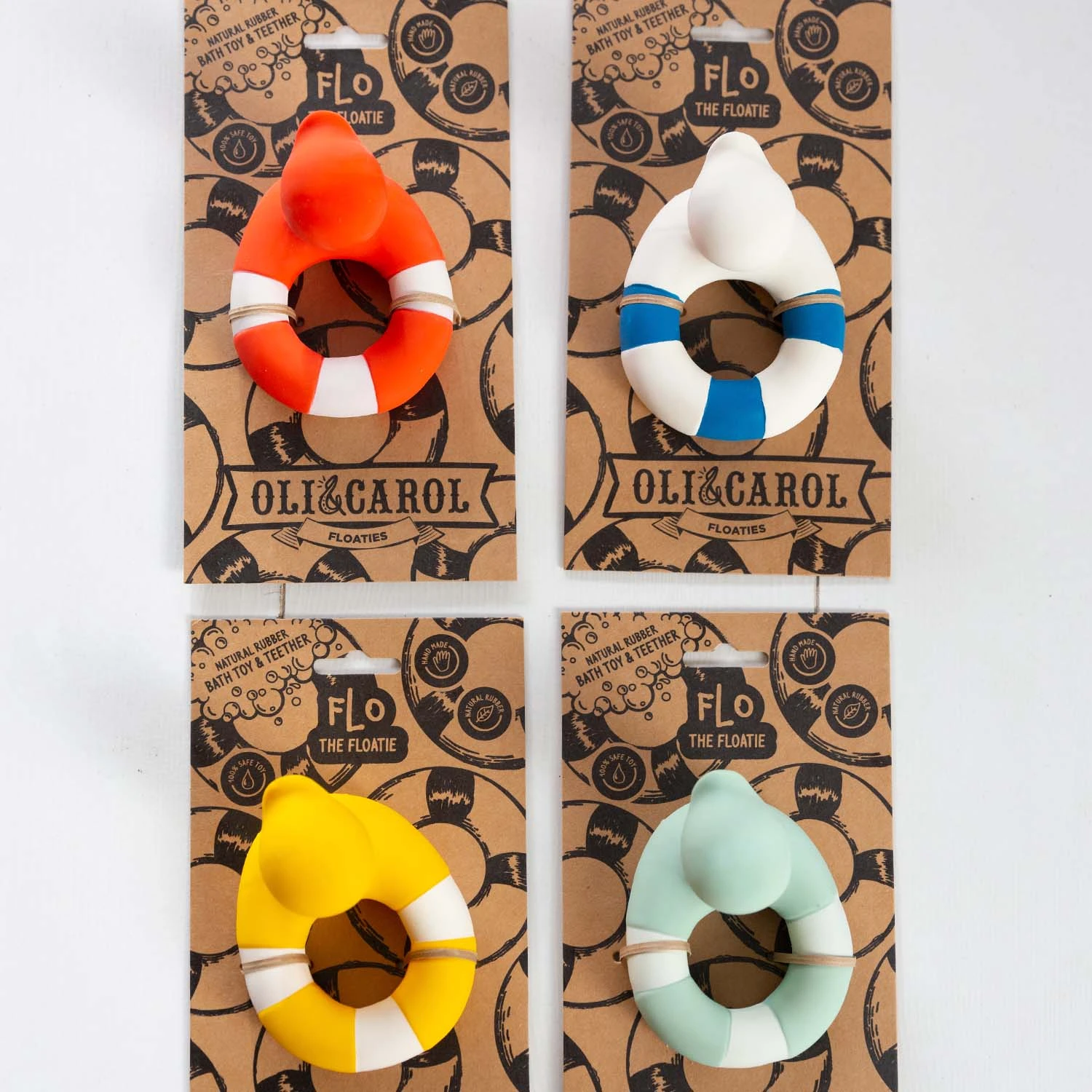 Inspired in the classic lifeguard ring, Flo the Floatie Mint is the new modern-twisted Oli&Carol natural rubber duckie. It is ready to splash around with kids during bath time! Also perfect as a baby teether, sensory play toy and decorative object. Made all in one piece with no hole making it 100% bacteria-free.