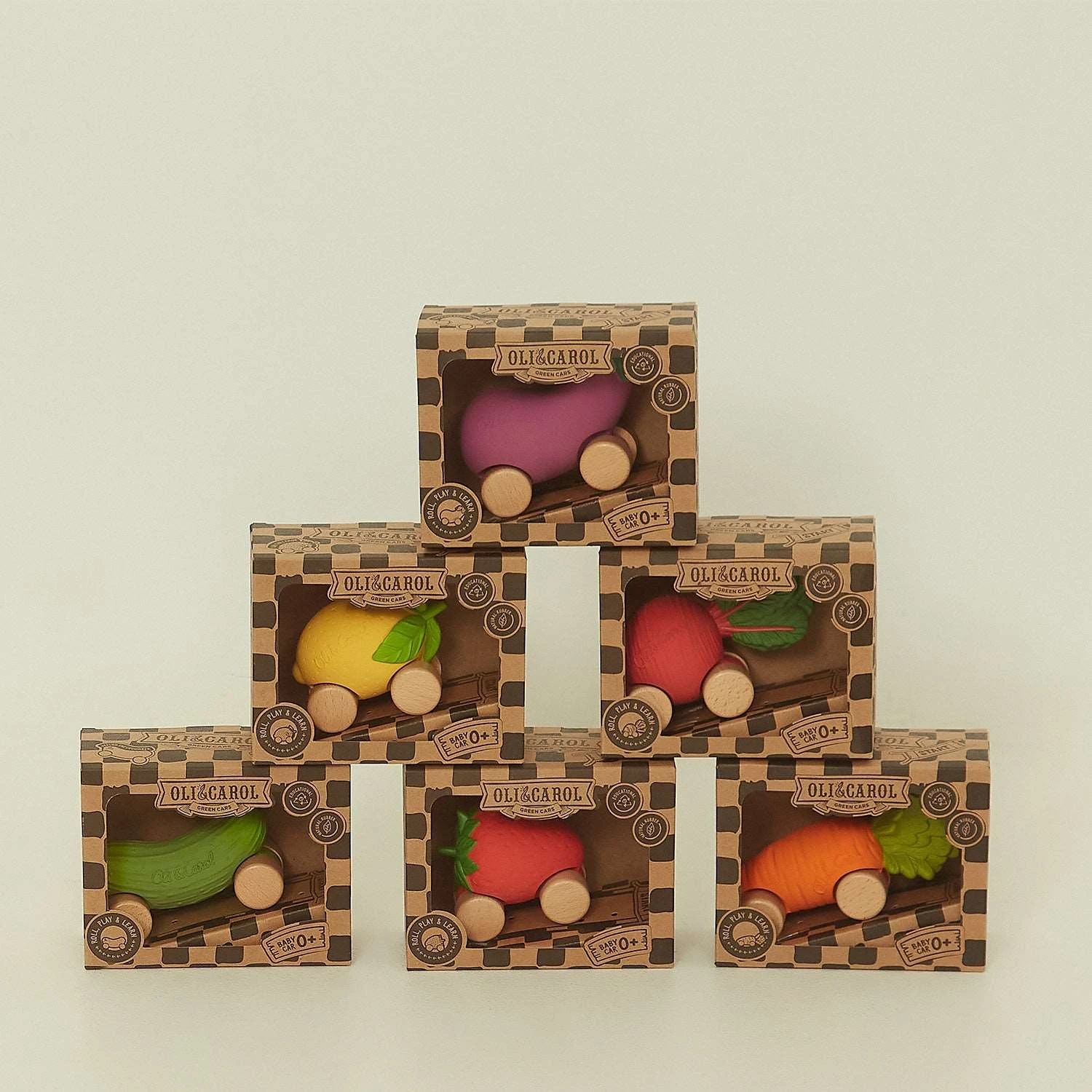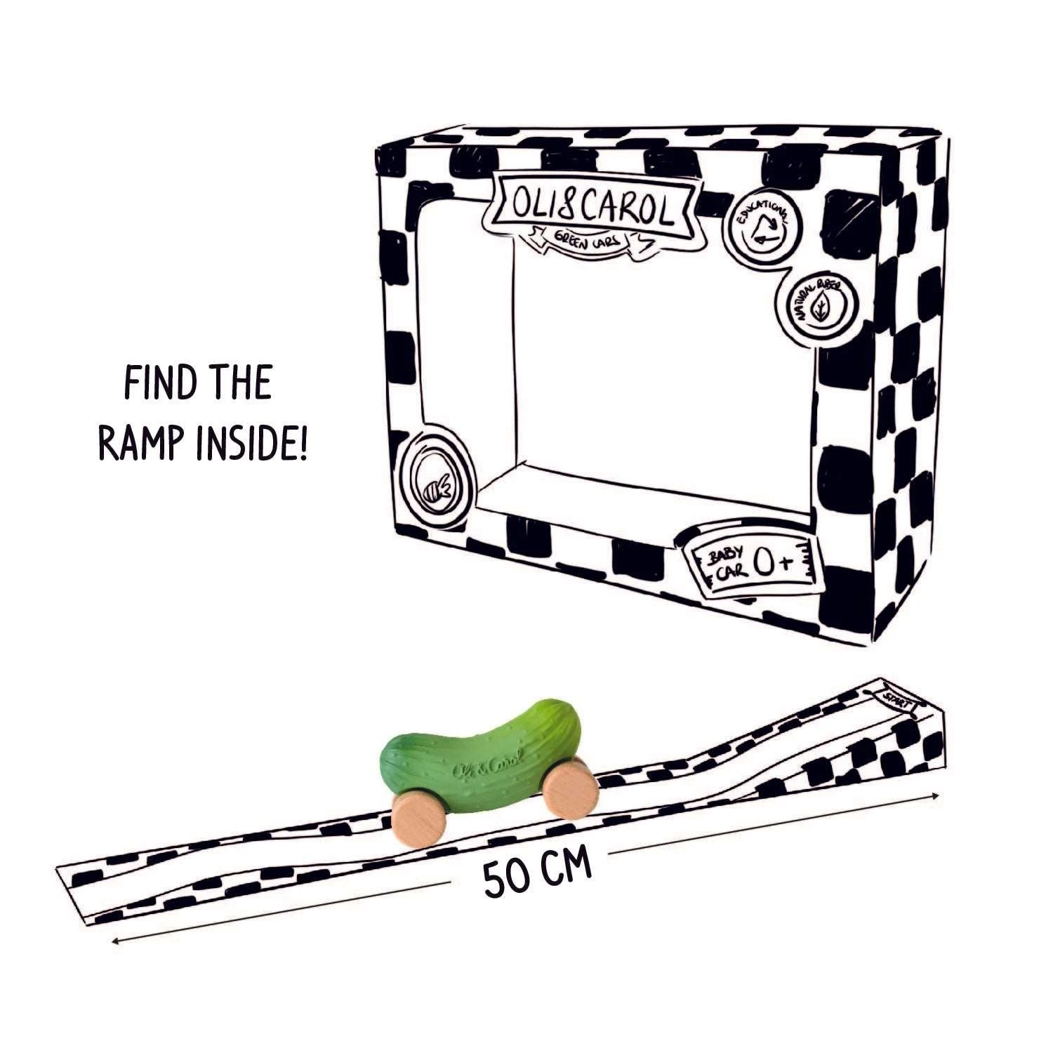 Introducing Pepino, the sustainable baby car toy! A pepino-inspired design handcrafted with natural rubber & FSC wood. This baby car promotes interactive play, cognitive development and social skills. It’s packaging has a drop-down ramp inside making it reusable & fun to play with!