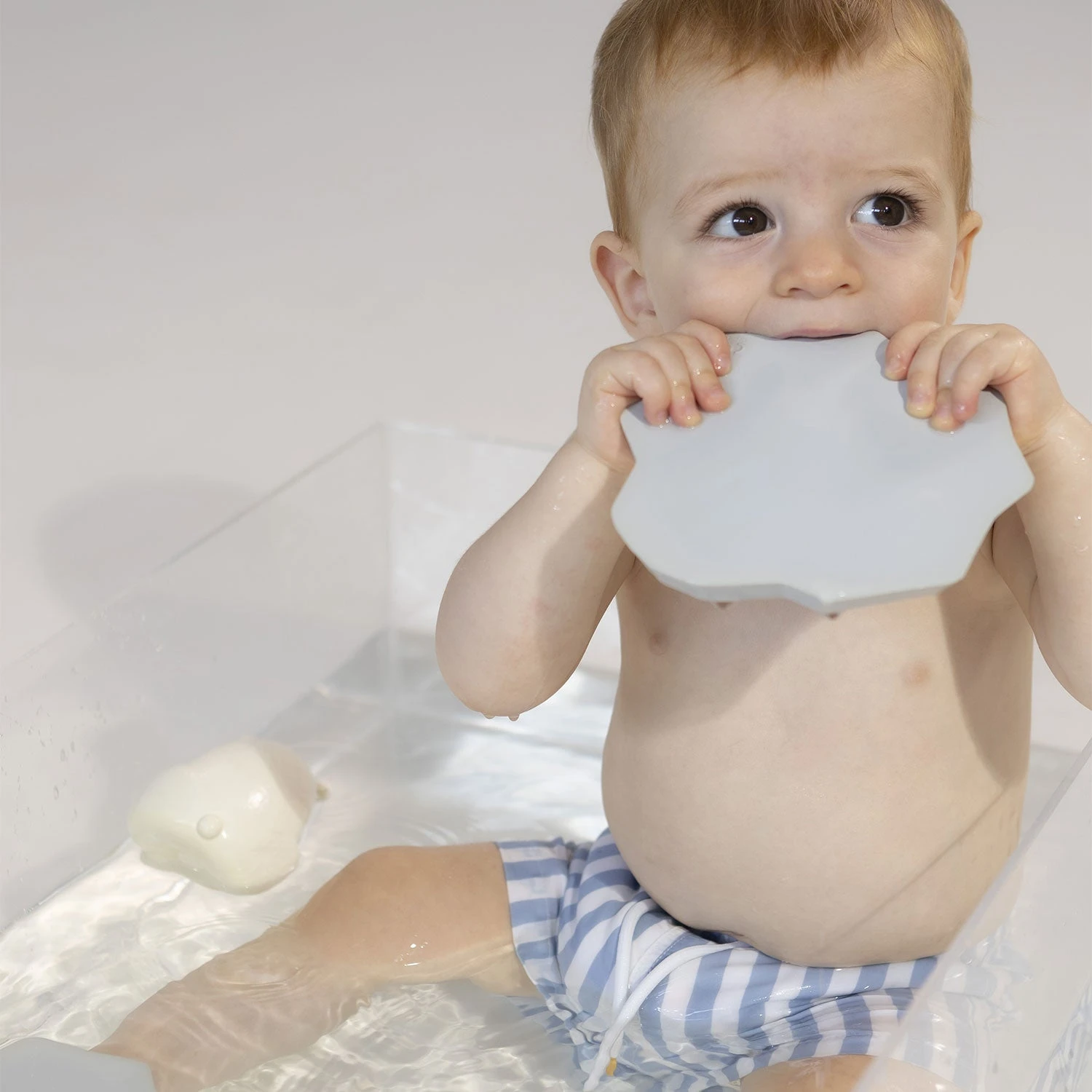 - Soft, easy to grasp and safe to chew. Stimulates baby’s senses and soothes teething gums.