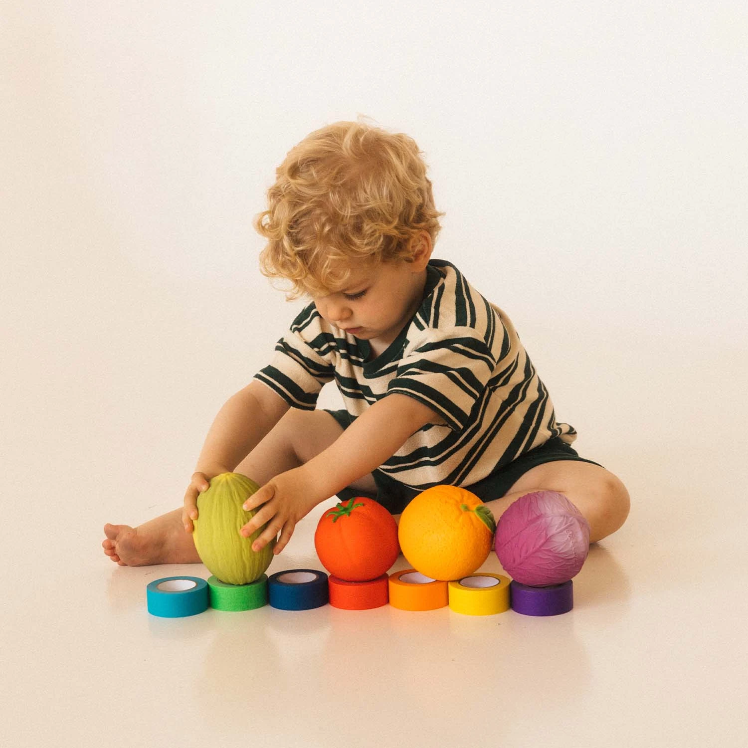 This tomato-shaped baby ball is perfect for kids to bounce, catch and squish. Made with 100% natural rubber and no hole, making it safe to play during bath time. It’s ergonomic shape is measured to provide a slowlier roll and it’s different textures will help stimulate babies’ senses while introducing them into following a healthy lifestyle by playing sports!