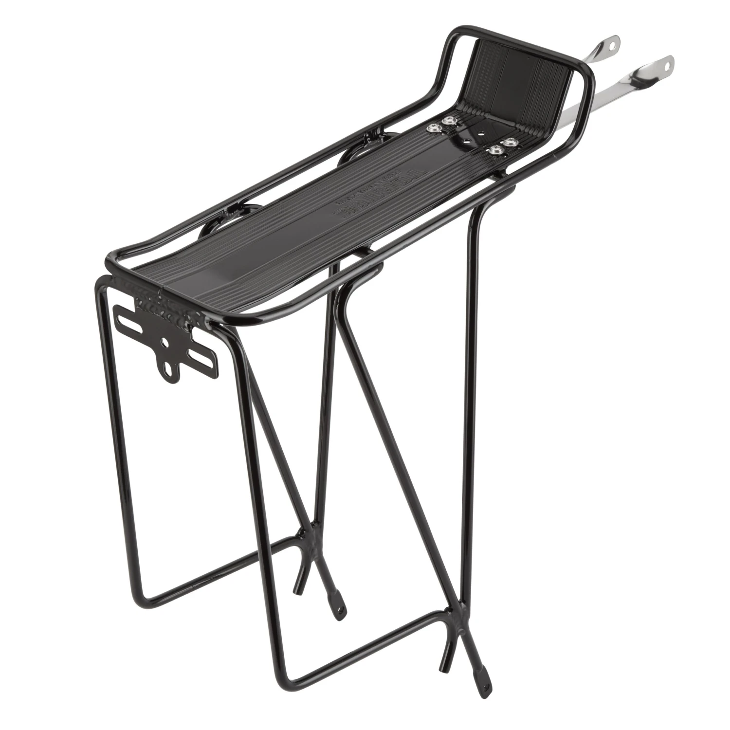 Made from tough 8mm alloy rod, the Tour’s design includes an offset stay, providing ample support for your panniers. This very popular rear rack incorporates a solid central plate to act as a mudguard. It includes long fitting brackets which offer generous adjustment for a truly universal fit, plus a rear reflector / light plate.