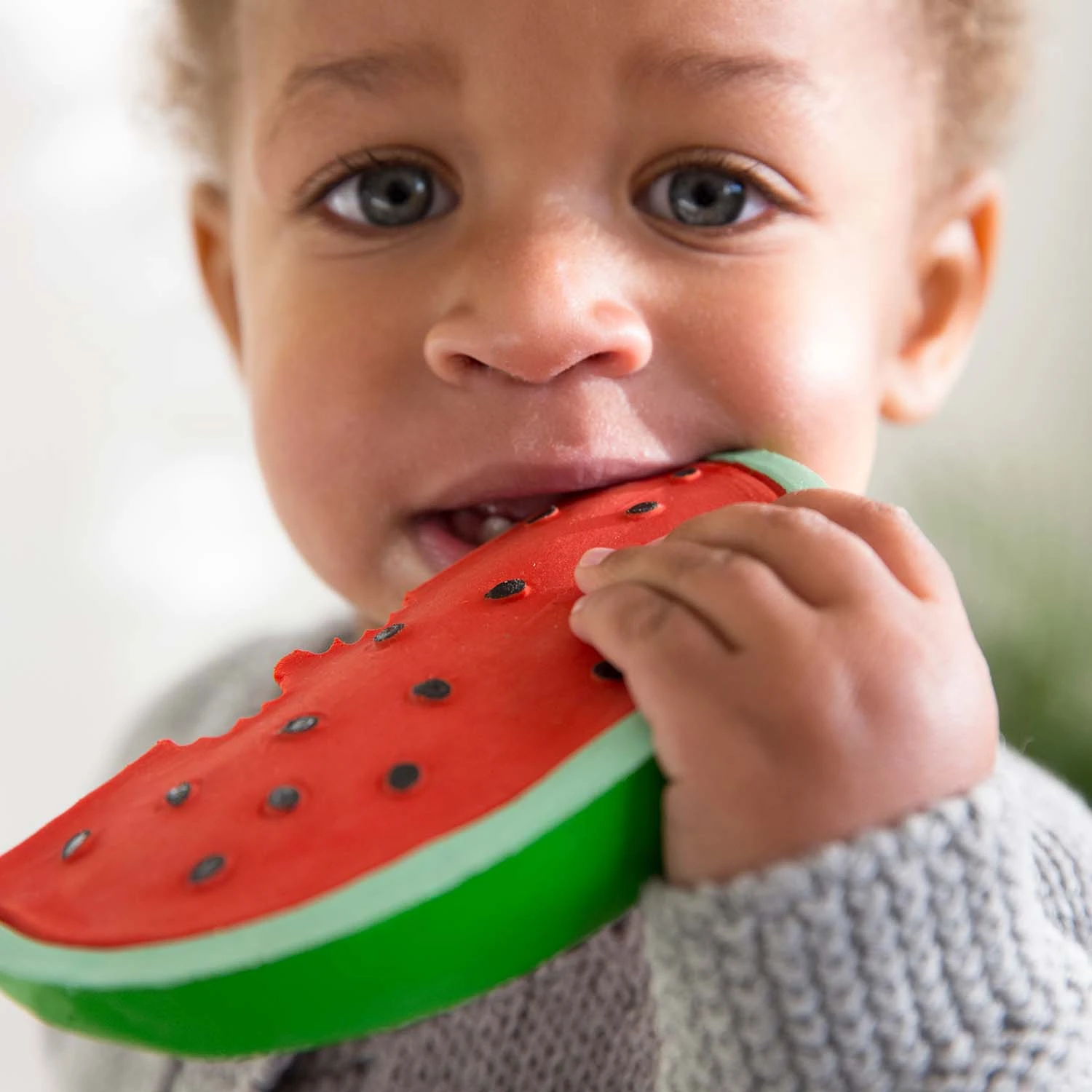 Wally the Watermelon is a fruit-shaped baby teether that will stimulate babies’ senses while soothing little gums. Its realistic textures will develop kids’ sense of touch. It is carefully hand painted with natural pigments, making it completely safe for little ones. Did you know that including watermelon in food helps keep 90% of water in human bodies? Introduce kids into a healthy lifestyle from a young age!